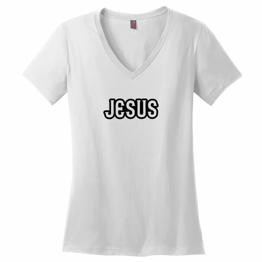 Jesus Saved My Life Women's White & Gray Design V-Neck T-Shirt