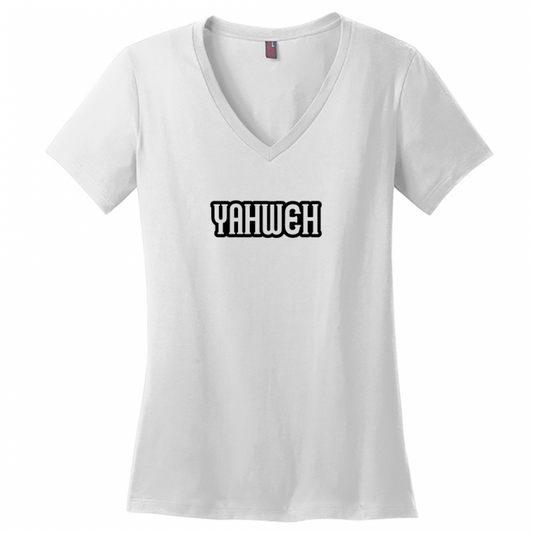 Yahweh White Design Woman's V-Neck